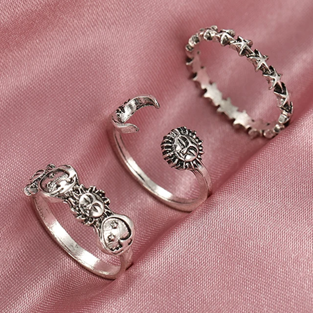 • Vintage Rings Set for Women Men Aesthatic Retro Punk Silver Plated Heart Flower Butterfly Chain Finger Ring Jewelry 2022