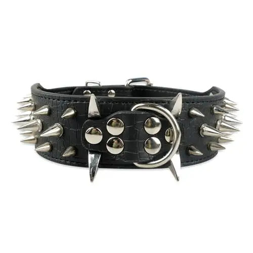 2" Wide Sharp Spiked Studded Leather Dog Collars Pitbull Bulldog Big Dog Collar Adjustable For Medium Large Dogs Boxer S M L XL