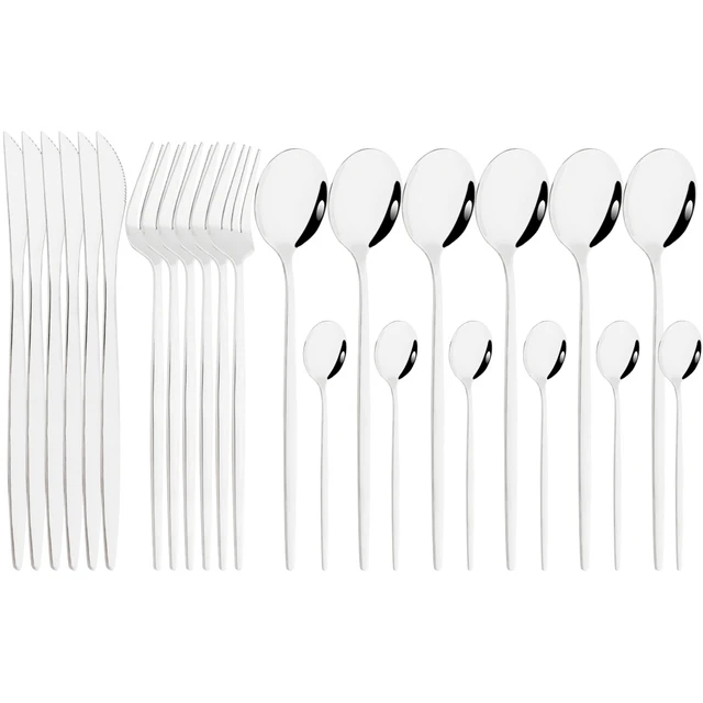 Total 24pieces a set, Include 6Pcs Dinner Knife 6Pcs Dinner Spoon 6Pcs Dinner Fork 6Pcs Tea Spoon