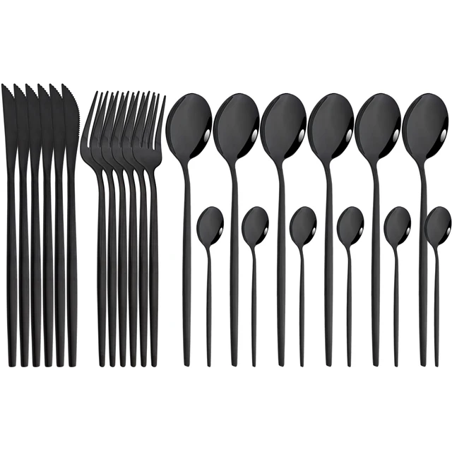 Total 24pieces a set, Include 6Pcs Dinner Knife 6Pcs Dinner Spoon 6Pcs Dinner Fork 6Pcs Tea Spoon