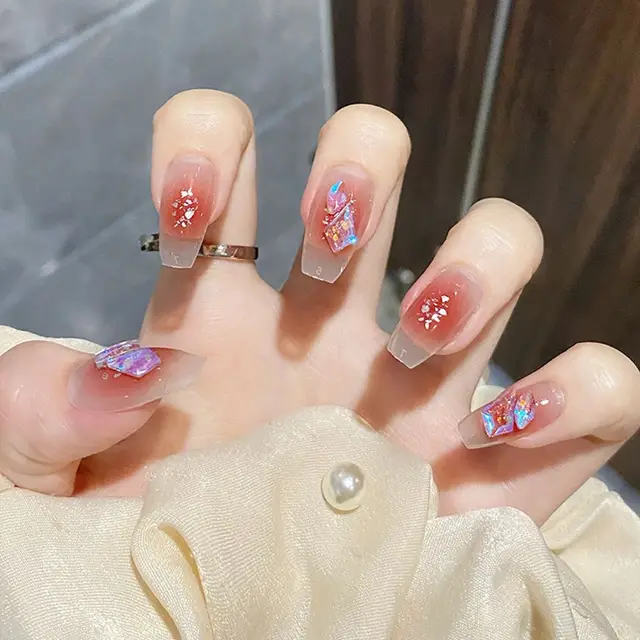 • Long Coffin False Nails Red Wine colour Artificial Ballerina Fake Nails With Glue Full Cover Nail Tips Press On Nails