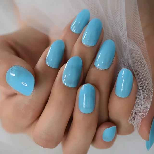 • Color Nails UV Polish Oval Faux Nails Light Taro Purple Glossy Nail Artificial Tips with Gluetabs 24pcs
