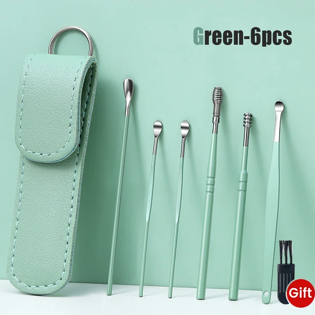 2 PCS Soft Silicone Earwax Remover Portable Ear Cleaner Stainless Steel Earwax 2 Head Ear Picks Earwax Curette Remover Ear Pick