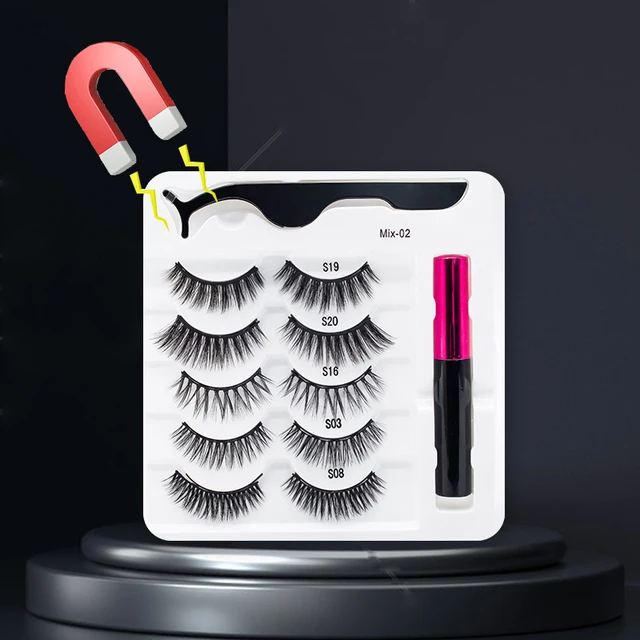 • 3/5/7Pairs Magnetic Eyelashes False Lashes Repeated Use Eyelashes Waterproof Liquid Eyeliner With Tweezer Makeup Set