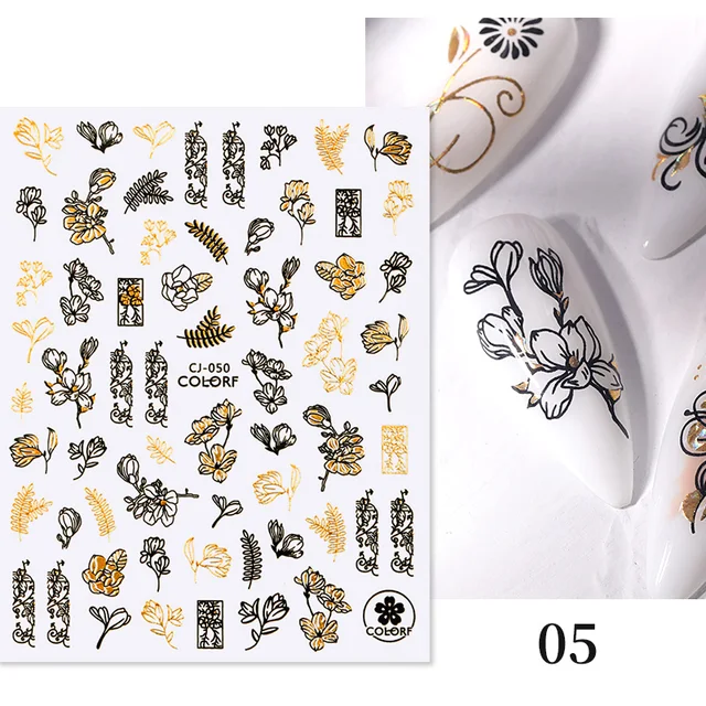 • Harunouta Marble Blooming 3D Foil Nail Stickers Gold Bronzing Leaf Flower For Nail Art Design Spring Decals Manicure Decoration