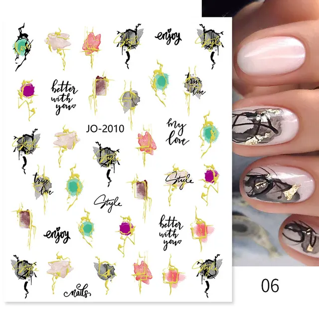 • Harunouta Marble Blooming 3D Foil Nail Stickers Gold Bronzing Leaf Flower For Nail Art Design Spring Decals Manicure Decoration