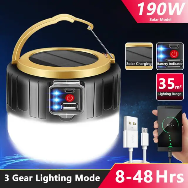 • Solar LED Camping Light USB Rechargeable Bulb For Outdoor Tent Lamp Portable Lanterns Emergency Lights For BBQ Hiking