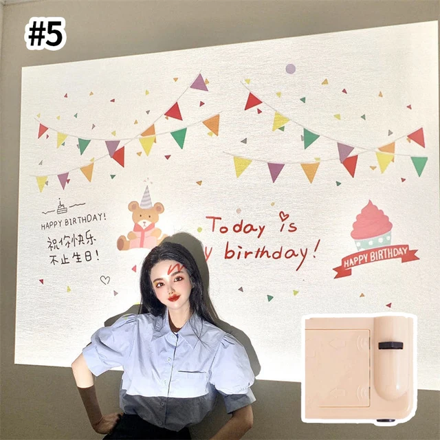 Korean Ins Projection Lamp Happy Birthday Night Light Popular Hot Photo Props Party Decorative Atmosphere Lights Creative Birthday Gifts