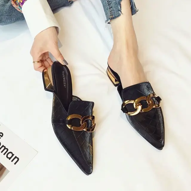 • Shoes Fashion Chain Mules for Women Square Head Slip on Flip Flops Women Slipper Summer Sandal Women's Shoe Solid Slide