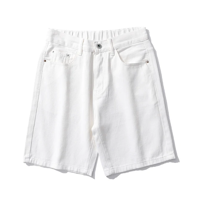Summer New Baggy White Short Jeans for Men Classic Style Black Straight Cotton Elastic Waist Denim Shorts Male Brand