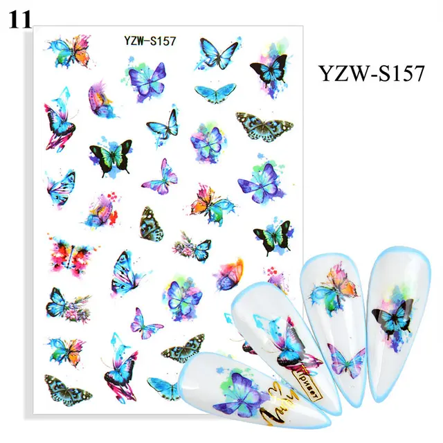 Butterfly Flower Leaves Self Adhesive Sliders Beauty Nail Foils Nail Stickers 3D Decals
