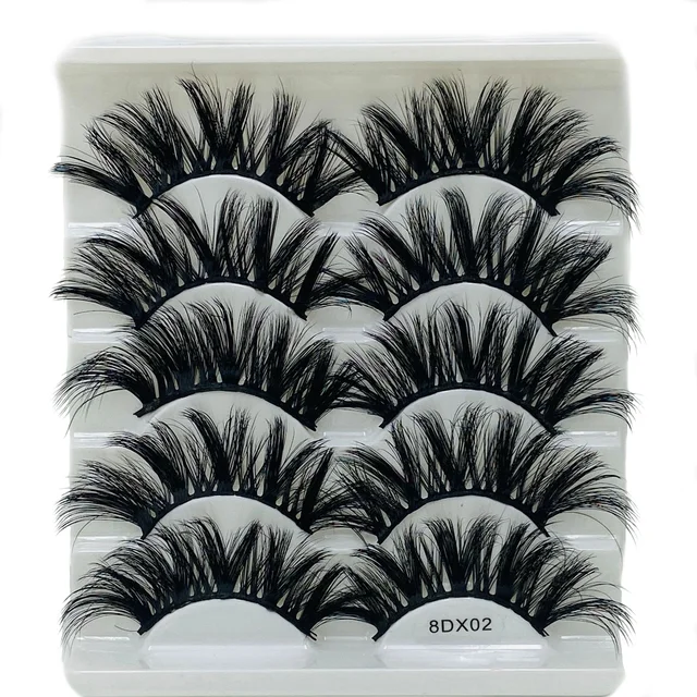 Item : 8D Mink Hair False Eyelashes Features: 8D Effect,Wispy Glam,Fluffy,Multilayer,Handmade,Resuable. Color: Black Material: Synthetic Fiber Type:Full Strip Dramatic Lashes Quantity: 5 Pairs Note : Please use eyelashes tweezers to take off the lashes instead of tear off by hand please do not clean the lashes with oil makeup remover Size can be trimed to fit your own eyes How to use Carefully remove the eyelashes from the case with tweezers Compare false eyelashes with your eye line length, trim to suitable length and width Add glue along the false eyelash root with cotton bud Hold the eyelash on the root of your natural lashes with pressure If necessary, apply eye shadow or eyeliner to make your eye line look more natural
