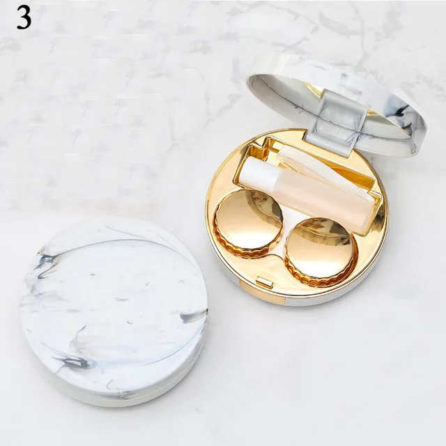 Mini Contact Lens Case Eyes Care Kit Holder Lens Case Travel Glasses Container Lenses Box Cute Marble Round Mirror Contact