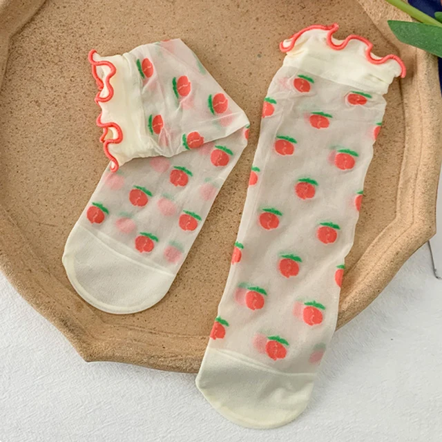 Transparent Crystal Silk Socks Lolita Lace Ruffle Sock Casual Socks Crew Socks Breathable Socks