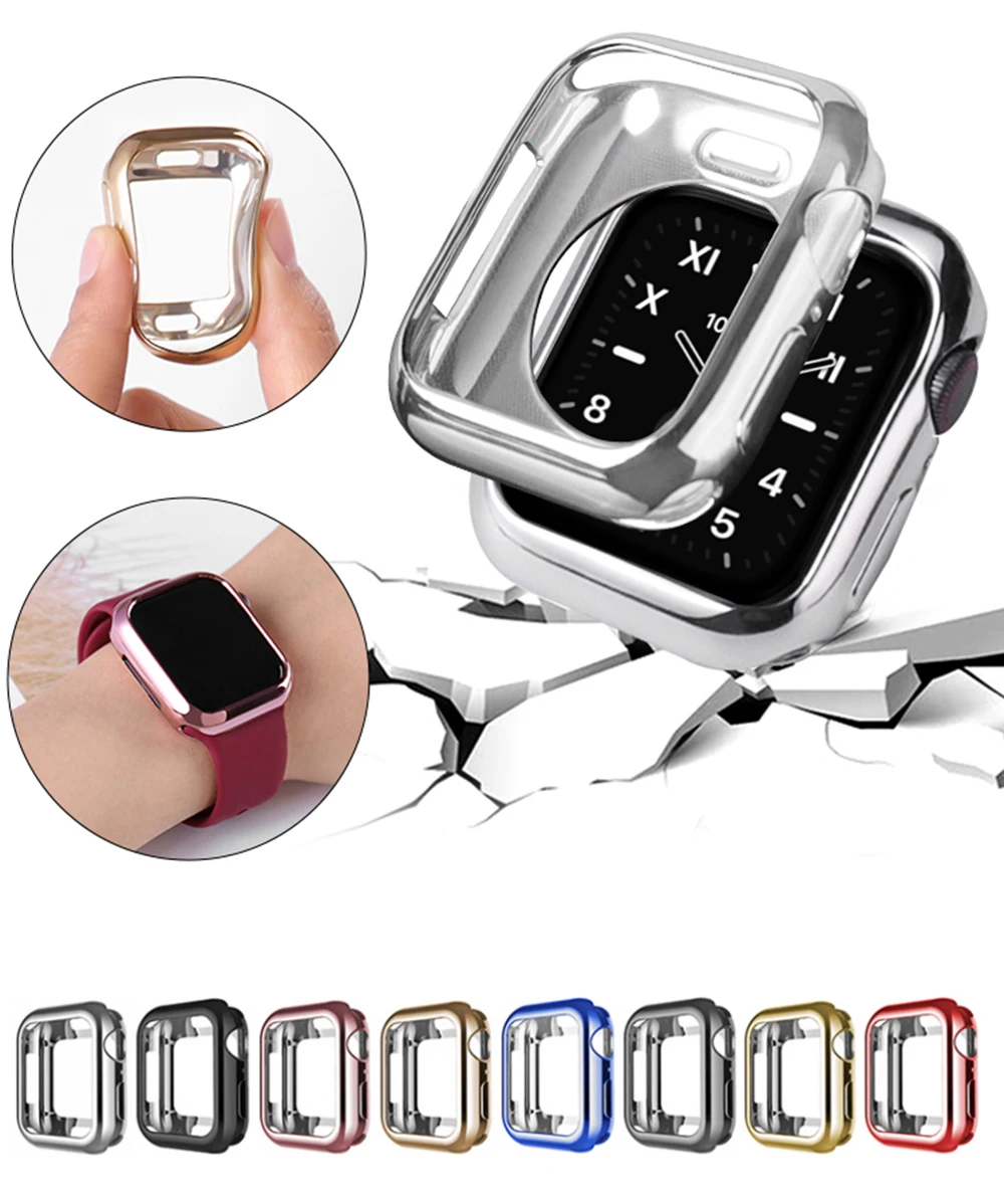 Watch case ultra-thin plated watch case for Apple 4 3 2 1 42MM 38MM soft transparent TPU cover for iWatch 5 44MM 40MM