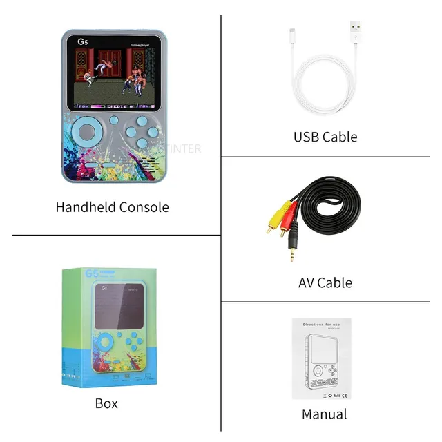 This retro handheld portable game console contains 500 popular games covering puzzle, adventure, shooting, racing, fighting and other game genres. Play endlessly with no extra charge.