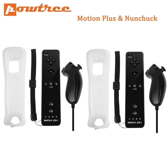 Nintendo Wii Joystick 2 in 1 Wireless Remote Gamepad Controller Set Optional Motion Plus with Nunchuck & Silicone Case