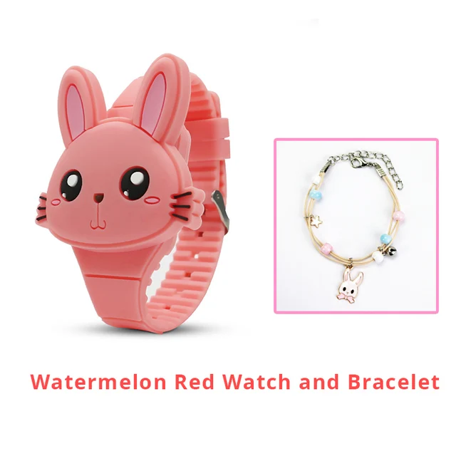 Rabbit Girls Watches with Bracelet Flip Cover Rubber Led Digital Kids Watch Child Clock Relogio Infantil Menino