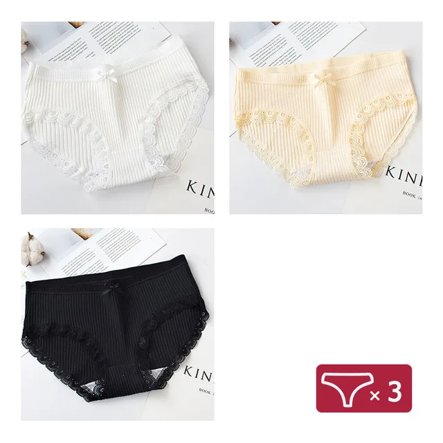 Comfortable Women Cotton Panties Set Sexy Lace Ruffle Underwear Breathable Mid Waist Briefs Stretchy Seamless Underpants