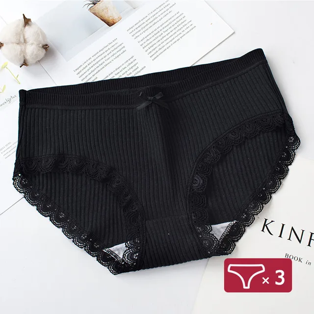 Comfortable Women Cotton Panties Set Sexy Lace Ruffle Underwear Breathable Mid Waist Briefs Stretchy Seamless Underpants