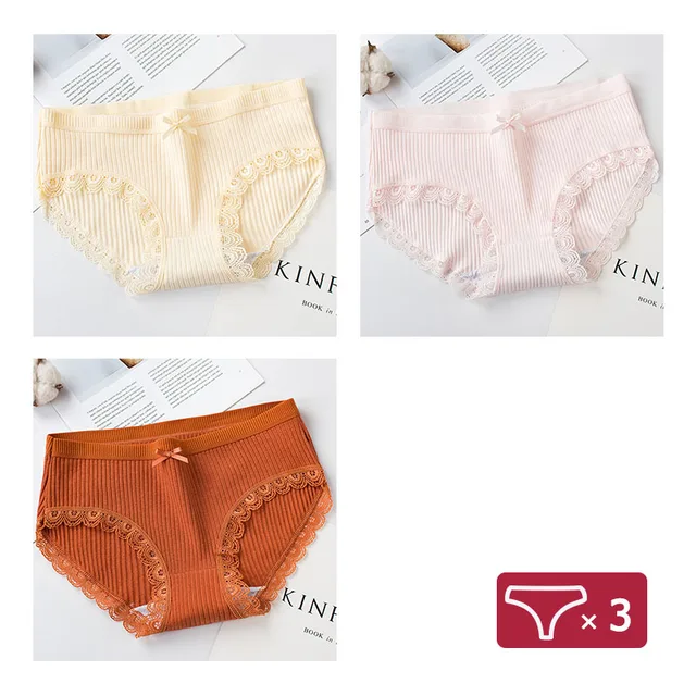Comfortable Women Cotton Panties Set Sexy Lace Ruffle Underwear Breathable Mid Waist Briefs Stretchy Seamless Underpants