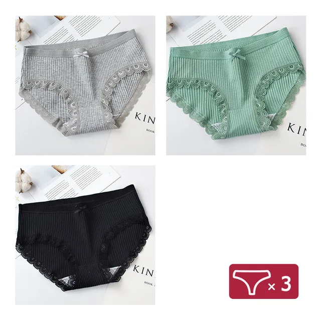 Comfortable Women Cotton Panties Set Sexy Lace Ruffle Underwear Breathable Mid Waist Briefs Stretchy Seamless Underpants