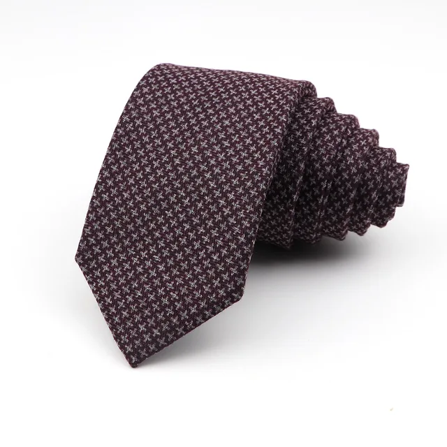 Soft Classic Diamond Check Artificial Wool Cotton Dark Color Tie Striped Slim Black Grey Necktie For Daily Accessory Gift