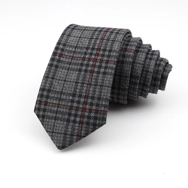 Soft Classic Diamond Check Artificial Wool Cotton Dark Color Tie Striped Slim Black Grey Necktie For Daily Accessory Gift