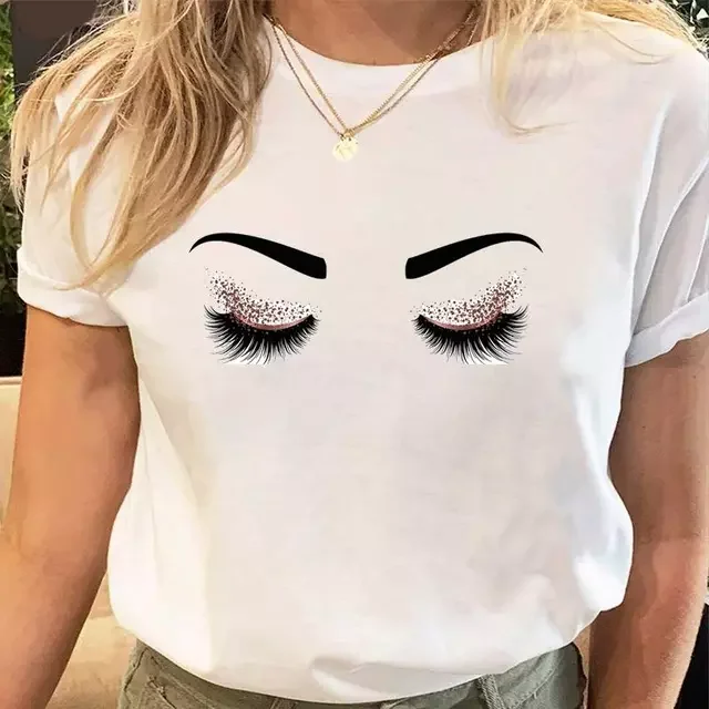 Lashes Style Lovely Sweet Print Tees Tshirt Cartoon Female Clothes Tops Print Ladies Fashion Graphic T-Shirt