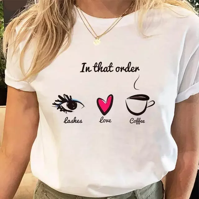 Lashes Style Lovely Sweet Print Tees Tshirt Cartoon Female Clothes Tops Print Ladies Fashion Graphic T-Shirt