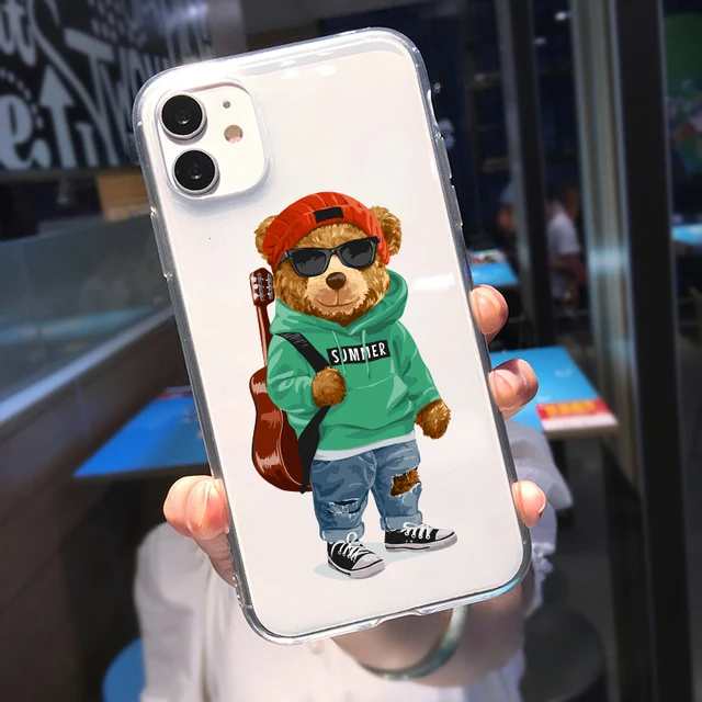 Fashion Brand Bear Phone Case For iPhone 13 12 Pro MAX 11 XR XS 7 SE20 X 8 6 Plus Cute Transparent Soft Silicone Cover Trend Fundas