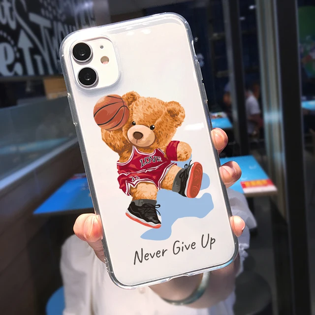 Brand Bear Phone Case For iPhone 12 Pro MAX 11 XR XS 7 13 X 8 6 Plus Cute Transparent Soft Silicone Cover Trend Fundas