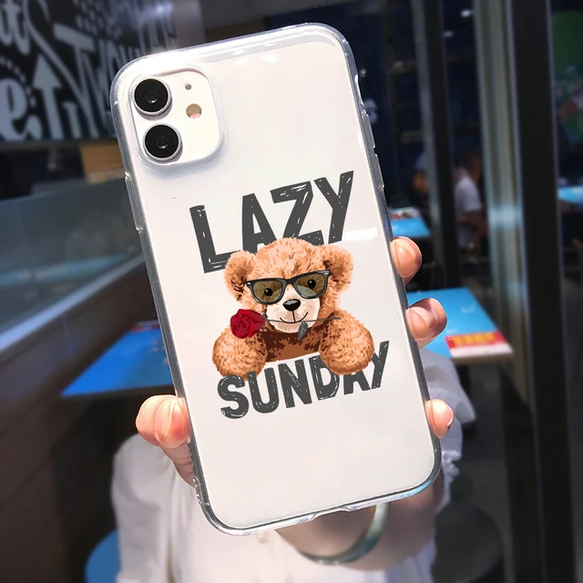 Fashion Brand Bear Phone Case For iPhone 13 12 Pro MAX 11 XR XS 7 SE20 X 8 6 Plus Cute Transparent Soft Silicone Cover Trend Fundas