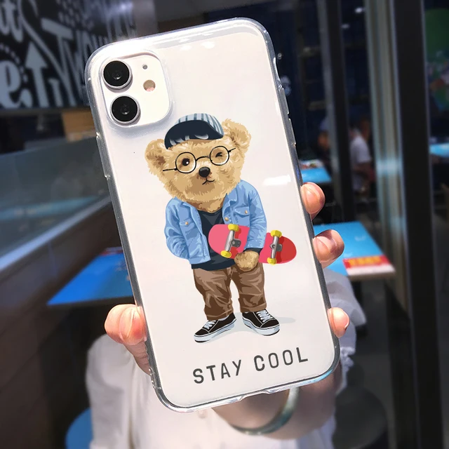 Fashion Brand Bear Phone Case For iPhone 13 12 Pro MAX 11 XR XS 7 SE20 X 8 6 Plus Cute Transparent Soft Silicone Cover Trend Fundas