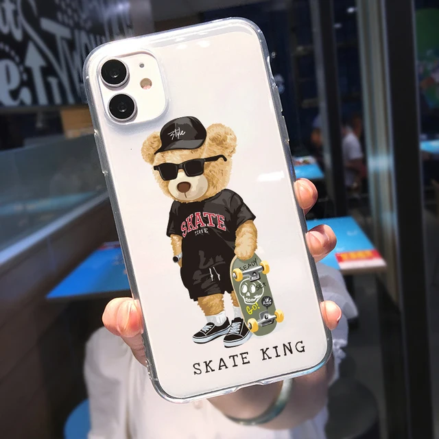 Fashion Brand Bear Phone Case For iPhone 13 12 Pro MAX 11 XR XS 7 SE20 X 8 6 Plus Cute Transparent Soft Silicone Cover Trend Fundas