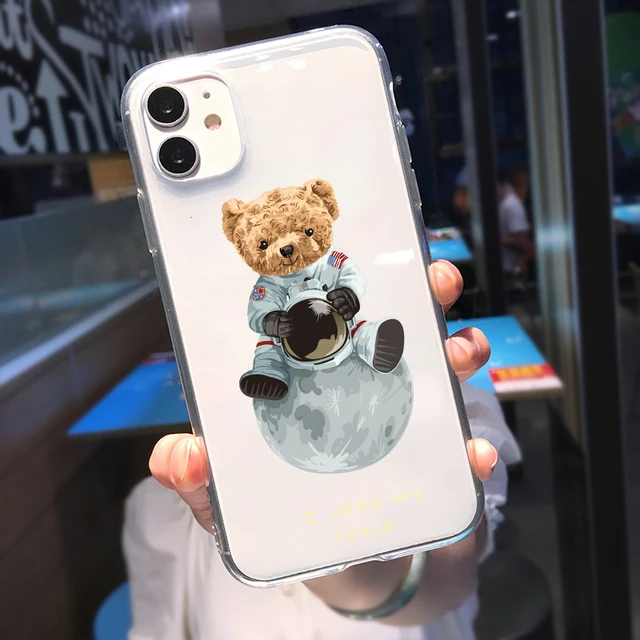 Fashion Brand Bear Phone Case For iPhone 13 12 Pro MAX 11 XR XS 7 SE20 X 8 6 Plus Cute Transparent Soft Silicone Cover Trend Fundas