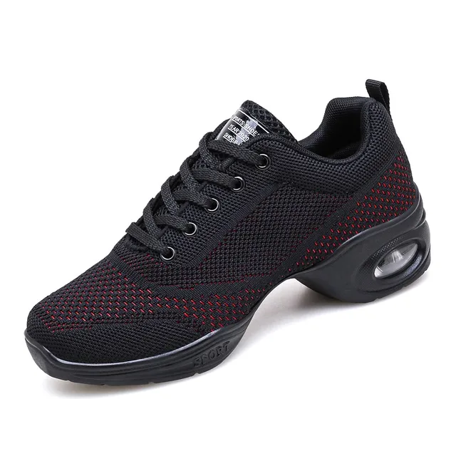 Jazz Dance Sneakers Women Breathable Mesh Lace Up Dancing Practice Shoes Cushioning Lightweight Fitness Trainers