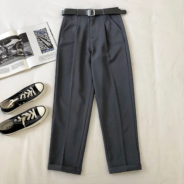 Office Lady Work Leisure Suit Pants 2021 Korean Solid Spring Autumn Casual High Waist Ankle Length Harem Pants