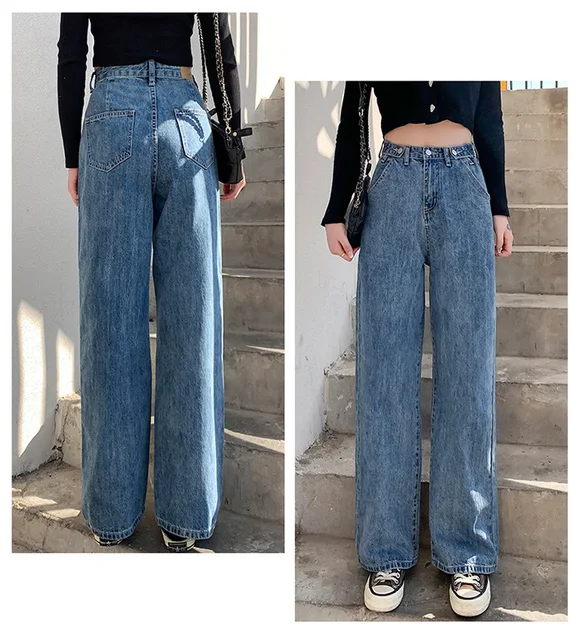 Jeans Street High Waist Pants Light Color Cotton Korean Fashion Loose Jeans Metal Buckle Wide Leg Y2k Female Jeans