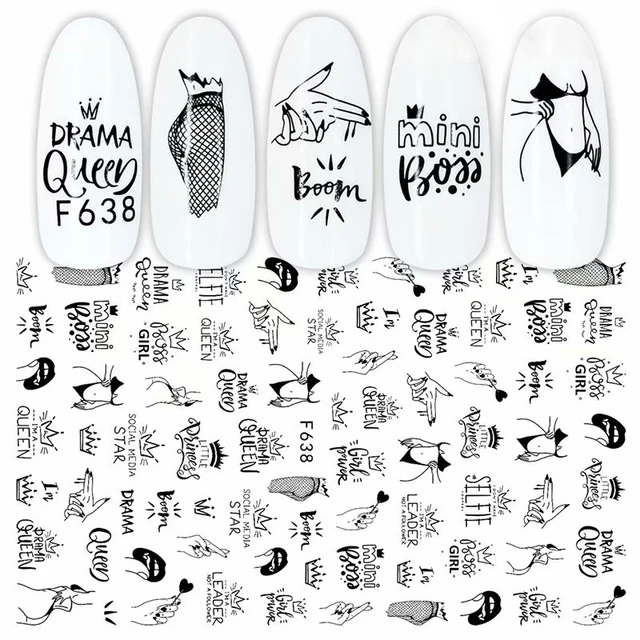 Nail Stickers Black Lines Geometric Leaves Heart Nail Design Adhesive Sliders for Manicure Decoration Art Decals CHF634-643