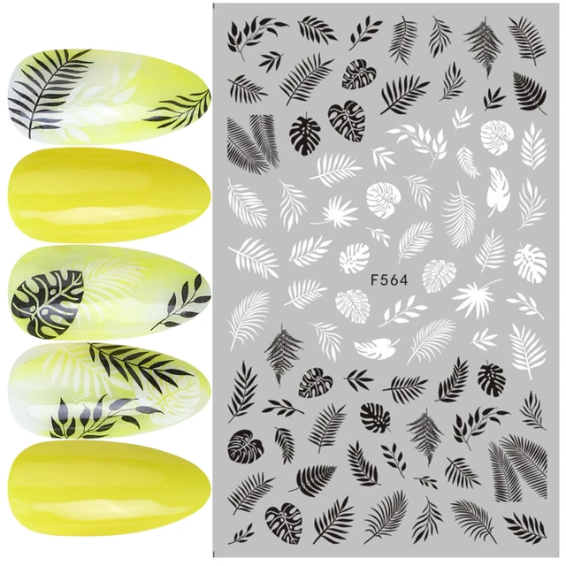 Nail Stickers Black Lines Geometric Leaves Heart Nail Design Adhesive Sliders for Manicure Decoration Art Decals CHF634-643
