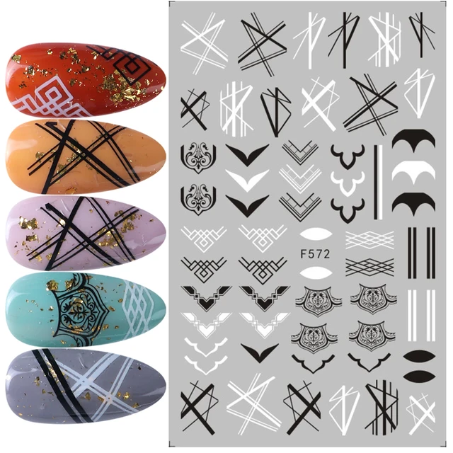 Nail Stickers Black Lines Geometric Leaves Heart Nail Design Adhesive Sliders for Manicure Decoration Art Decals CHF634-643