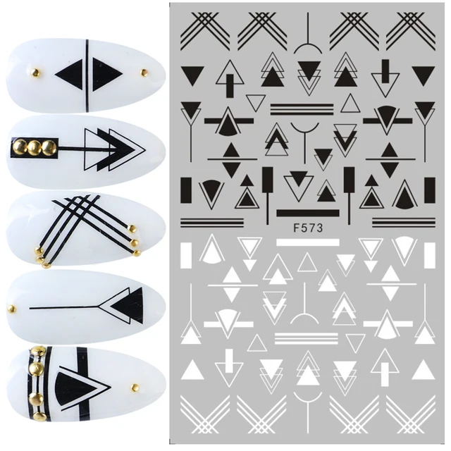 Nail Stickers Black Lines Geometric Leaves Heart Nail Design Adhesive Sliders for Manicure Decoration Art Decals CHF634-643