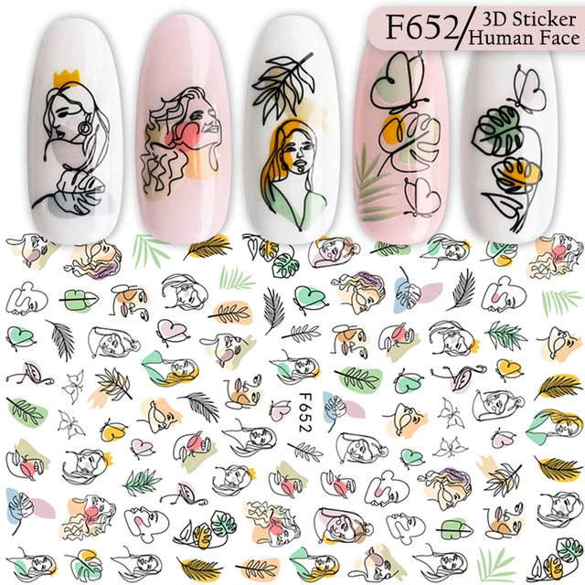 Nail Stickers Black Lines Geometric Leaves Heart Nail Design Adhesive Sliders for Manicure Decoration Art Decals CHF634-643