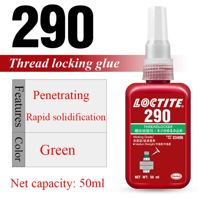 -290(green) typical use: for locking and sealing of installed M2-M12 threads. Also used to seal weld joints. Prevent thread rust and corrosion.