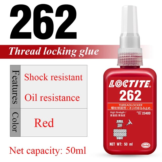 -262(red) typical use: suitable for most metal surfaces, thixotropic annual viscosity, good chemical resistance. For locking and sealing of thread up to M20. It has excellent rust and corrosion resistance.