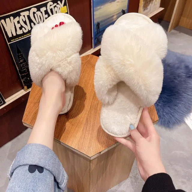 slippers female winter plush cross with cotton slippers, indoor warm plush slippers