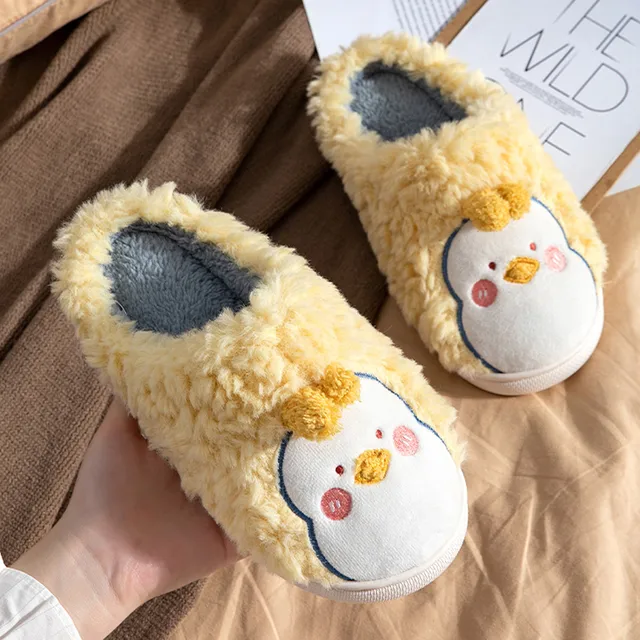 Fuzzy Slipper Women Winter Fur Contton Warm Plush Non Slip Indoor Fluffy Lazy Female Mouse Ears Embroidery Floor Shoe