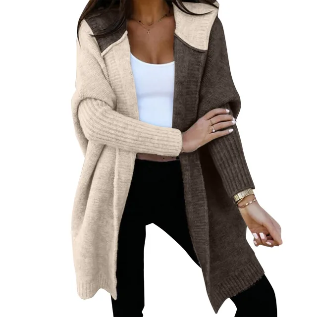 Women Color Blocking Loose Fashion Patchwork Sweater Knit Long Sleeve Cardigan Jacket Coat