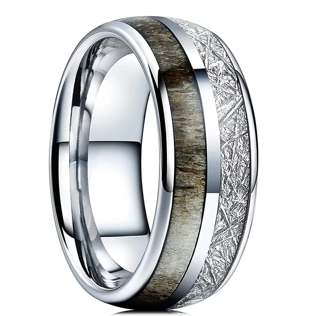 • Fashion 8mm Men Black Tungsten Wild Life Hunting Ring Koa Wood Inlay Deer Family Silhouette Steel Ring Men Wedding Band